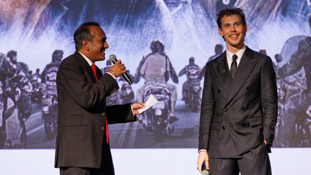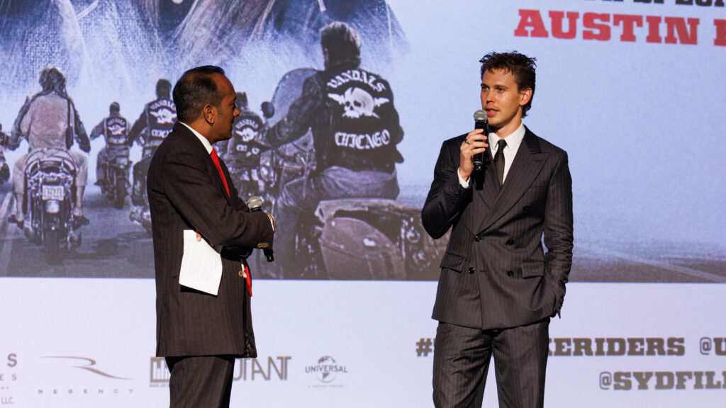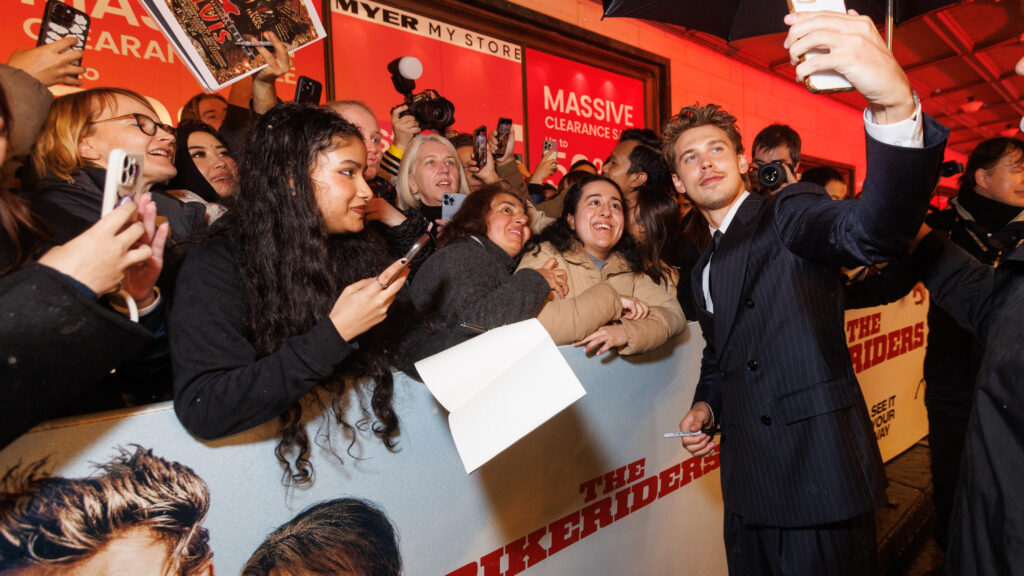 Last night, fans and guests braved the rain to see Austin Butler at the Australian Premiere of The Bikeriders, escorted to The State Theatre by a convoy of motorcyles riding in formation who revved their engines along Market Street.